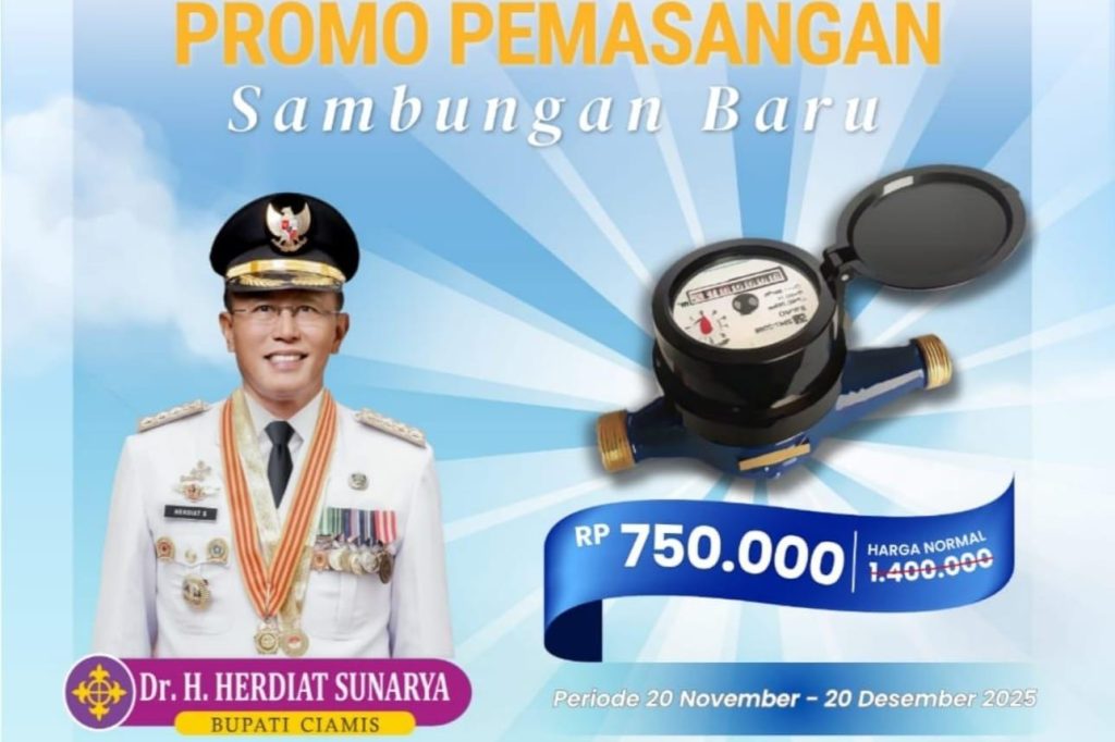 ungkapsebab.com, BERITA CIAMIS. Perusahaan Umum Daerah Air Minum (Perumda) Tirta Galuh Kabupaten Ciamis resmi meluncurkan promo akhir tahun yang berlaku mulai Kamis (20/11/2025) hingga 20 Desember 2025. Melalui program ini, PDAM menawarkan biaya pemasangan sambungan baru dengan tarif khusus hanya Rp750.000, jauh lebih murah dibandingkan harga normal.