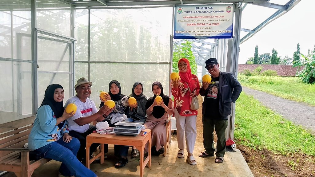 ungkapsebab.com, BERITA CIAMIS. Bumdes Tirta Rancabala Desa Cimari resmi melaksanakan launching panen melon perdana di area green house Dusun Ranjirata RT 16, Kecamatan Cikoneng, minggu (30/11/2025). Sebagai langkah nyata memperkuat ketahanan pangan sekaligus memperkenalkan produk unggulan desa.