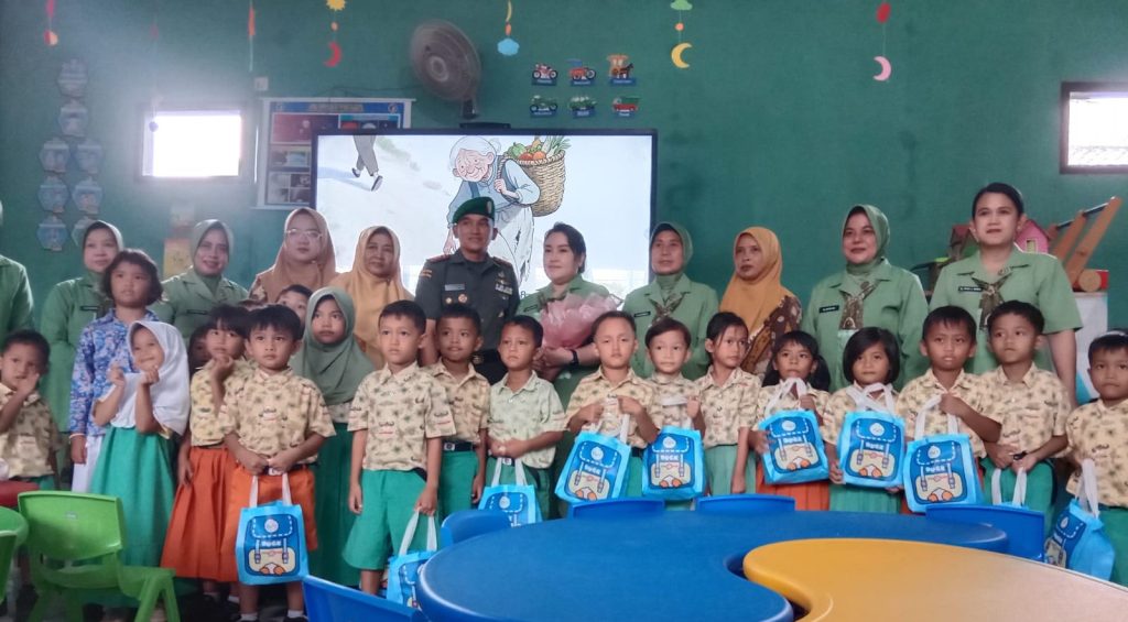 Pada kesempatan itu, Dandim menyerahkan sejumlah bingkisan sebagai bentuk perhatian dan kepedulian terhadap dunia pendidikan, khususnya bagi anak-anak usia dini.